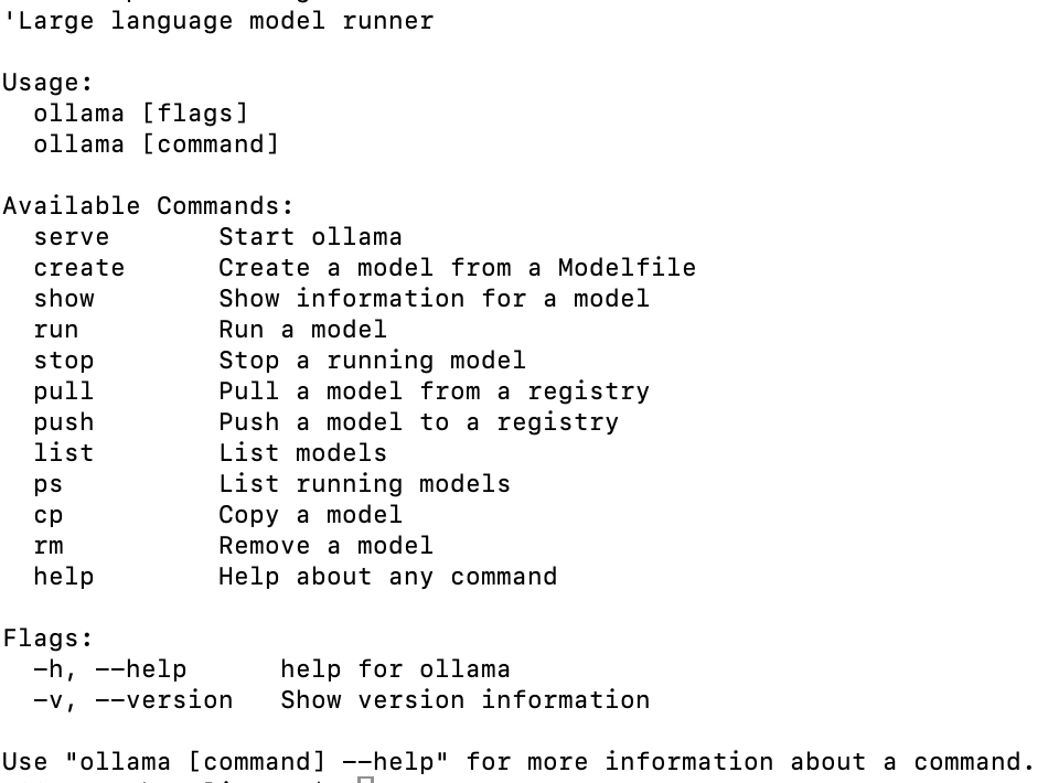 ollama -h 如图